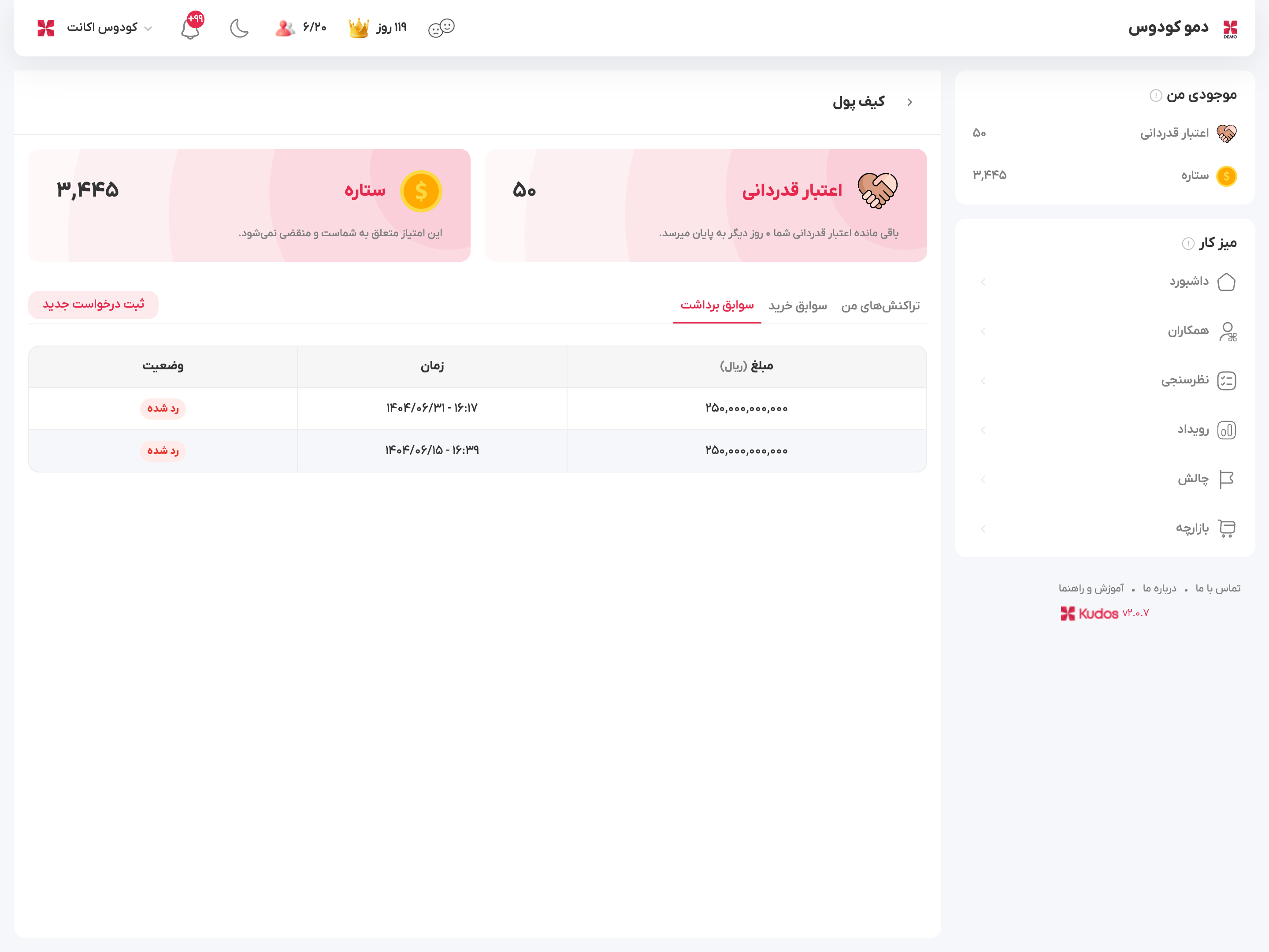 رد شده: درخواست رد شده و امتیازت فوراً برمیگرده به موجودیت.